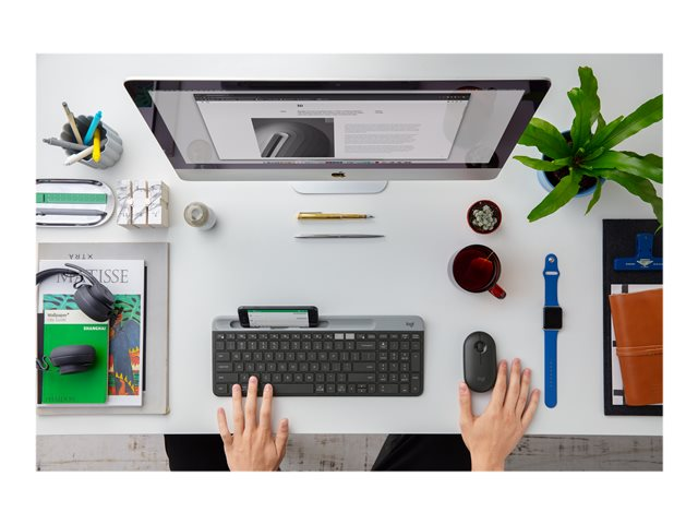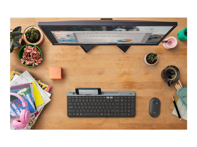 Tuotekuvaus Logitech Pebble M350 - hiiri - 2.4 GHz, Bluetooth - grafiitti Laitteen tyyppi Hiiri Liitettävyystekniikka Langaton - 2.4 GHz, Bluetooth Väri Grafiitti Ulkomitat (PxSxK) 5.9 cm x 10.7 cm x 2.65 cm Paino 100 g Langaton vastaanotin Nano USB johdoton vastaanotin Liikkeen havaitsemistekniikka Optinen Painikkeiden määrä 3 Liiketarkkuus 1000 dpi Ominaisuudet High Definition Optical Technology Akku / paristo AA-tyyppi Vaadittu käyttöjärjestelmä Microsoft Windows 7 / 8 / 10 or later, Apple MacOS X 10.10 tai uudempi, Google Chrome OS, Android 5.0 or later, Linux Kernel 2.6 tai myöhempi Valmistajan takuu 2 vuoden takuu -