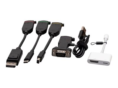 Tuotekuvaus C2G Universal 4K HDMI Dongle Adapter Ring with Color Coded DisplayPort and USB-C - videosovitinpakkaus - HDMI / DisplayPort / USB-C Kaapeli Videosovitinpakkaus - HDMI / DisplayPort / USB-C Sisältämä määrä 2 Väri Musta Ominaisuudet 4K-tuki Valmistajan takuu Rajoitettu elinaikainen takuu -