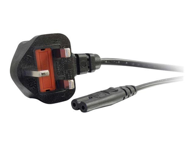 Virtajohto - power IEC 60320 C7 to BS 1363 (uros) - vaihtovirta 250 V - 2 m - valettu - musta - Yhdistynyt kuningaskunta