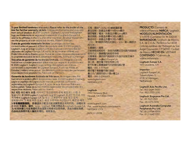 Tuotekuvaus Logitech C505e - verkkokamera Laitteen tyyppi Verkkokamera Audio Kyllä: sisäänrakennettu monisuuntamikrofoni Ulkomitat (PxSxK) 7.291 cm x 6.664 cm x 3.191 cm Paino 75 g Liitäntäteknologia Langallinen Kamera Väri Kuvataajuus (maks.) 30 kuvaa sekunnissa Videotilat 720p Terävyysalueen säätö Kiinteä polttopiste Liitännät USB Sisältyvät kaapelit 1 - USB-kaapeli - integroitu - 2 m Ominaisuudet RightLight 2 teknologia, Skype for Business -yhteensopiva, Microsoft Teams -yhteensopiva, Zoom-yhteensopiva, Google Voice -yhteensopiva, Meet-yhteensopiva, automaattinen valonkorjaus, 60°:n näkökenttä Valmistajan takuu 2 vuoden takuu -