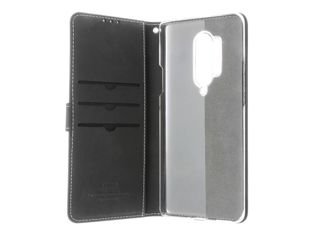 Läppäkansi matkapuhelimelle - aito nahka, paperi, pahvi, polykarbonaatti, alumiinifolio - musta malleihin OnePlus 8 Pro