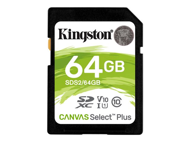 Tuotekuvaus Kingston Canvas Select Plus - Flash-muistikortti - 64 Gt - SDXC UHS-I Tuotetyyppi Flash-muistikortti Koko tai muoto SDXC UHS-I -muistikortti Tallennuskapasiteetti 64 Gt Nopeusarvo Video Class V10 / UHS-I U1 / Class10 Valmistajan takuu Rajoitettu elinaikainen takuu -