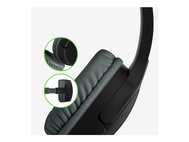 Tuotekuvaus Belkin SoundForm Mini - kuulokkeet mikrofonilla varustettu Tuotteen tyyppi Kuulokkeet - Bluetooth - langaton - 3,5 mm jakkiliitin Suosituskäyttö Kannettava elektroniikka Tyyli Lapset Väri Musta Kuulokkeiden muoto Korvien päällä Liitettävyystekniikka Langaton Langaton tekniikka Bluetooth Bluetooth-versio Bluetooth 5.0 Äänentoistotila Stereo Audio-ominaisuudet Herkkyys 85 dB Säädöt Toisto/tauko, volyymi, paritustila Valmistajan takuu 2 vuoden takuu -