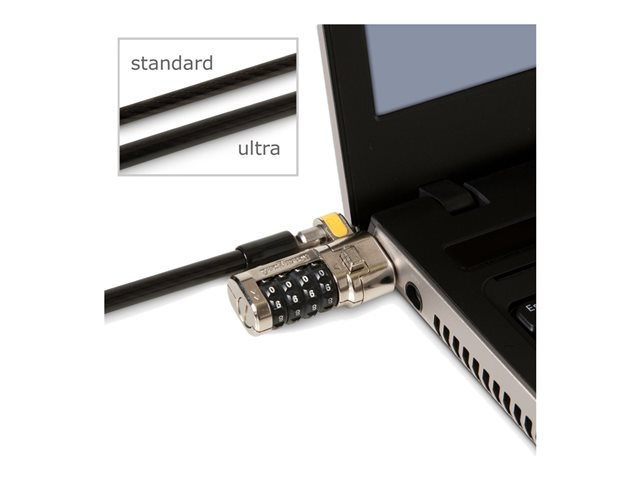 Tuotekuvaus Kensington ClickSafe Ultra - Master Coded - sylimikron lukittava kaapeli Tuotetyyppi Sylimikron lukittava kaapeli Ominaisuudet Yhdistelmälukko -
