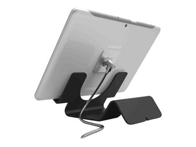 Tuotekuvaus Compulocks Universal Tablet Holder with Keyed Cable Lock - turvallinen pöytäjalusta tuotteelle tabletti Tuotteen tyyppi Turvallinen pöytäjalusta Käyttötarkoitus: Tabletti Pakkaussisältö Turvakaapeli, tabletin pöytäjalusta Tuotemateriaali Korkealaatuinen alumiini Väri Musta -