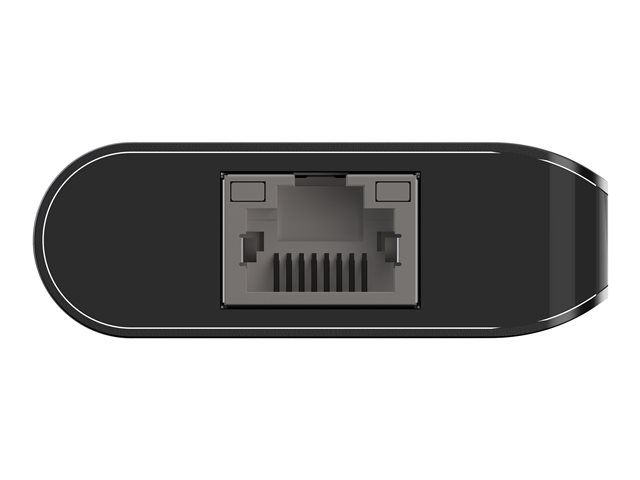 Tuotekuvaus Belkin CONNECT USB-C 6-in-1 Multiport Adapter - telakointiasema - USB-C - HDMI - 1GbE Tuotteen tyyppi Telakointiasema Telakkaliitäntä USB-C Videoliitännät HDMI Verkkoyhteydet Gigabit Ethernet -