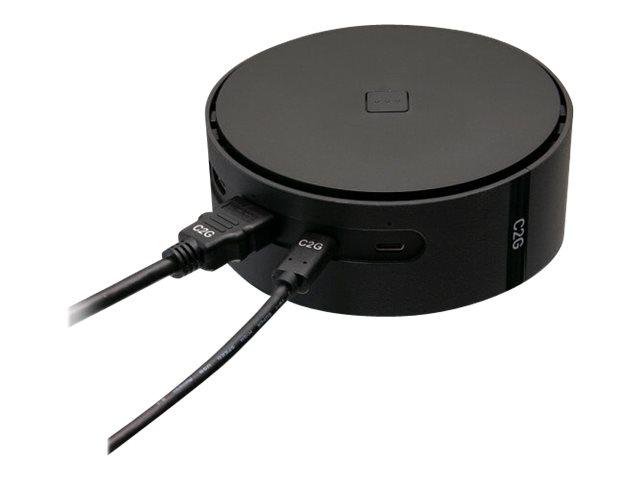 Tuotekuvaus C2G Conference Room Video - telakointiasema - USB-C - HDMI Tuotteen tyyppi Telakointiasema Telakkaliitäntä USB-C Videoliitännät HDMI Paino 904 g Väri Musta Virransyöttö AC 120/230 V Valmistajan takuu 3 vuoden takuu -