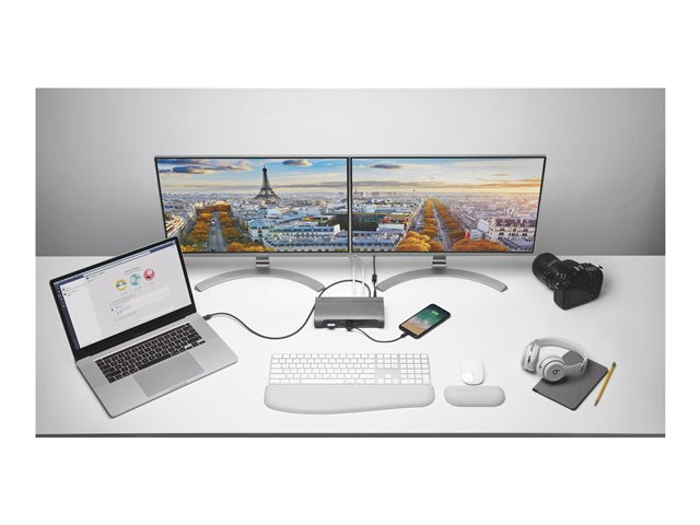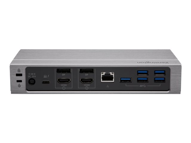 Tuotekuvaus Kensington SD5600T Thunderbolt 3 and USB-C Dual 4K Hybrid Docking Station - 100W PD - Win/Mac - telakointiasema - USB-C / Thunderbolt 3 - 2 x HDMI, 2 x DP - 1GbE Tuotteen tyyppi Telakointiasema Telakkaliitäntä USB-C / Thunderbolt 3 Videoliitännät 2 x HDMI, 2 x DP Ulkomitat (PxSxK) 15.5 cm x 25.4 cm x 9.2 cm Paino 1.7 kg Väri Hopea Lokalisointi Eurooppa Verkkoyhteydet Gigabit Ethernet Virransyöttö Virtasovitin AC 120/230 V / DC 20 V Valmistajan takuu 3 vuoden takuu -