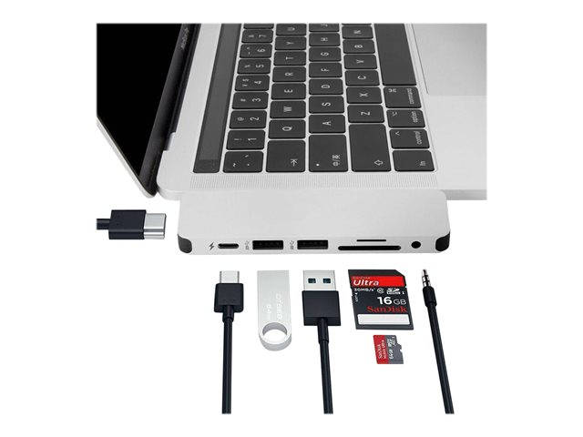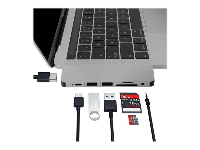 Tuotekuvaus HyperDrive Solo 7-in-1 Hub - telakointiasema - USB-C - HDMI Tuotteen tyyppi Telakointiasema Telakkaliitäntä USB-C Videoliitännät HDMI Ulkomitat (PxSxK) 11 cm x 3 cm x 0.9 cm Paino 40 g Väri Hopea Virransyöttö Tuotettu teho Valmistajan takuu 2 vuoden takuu -