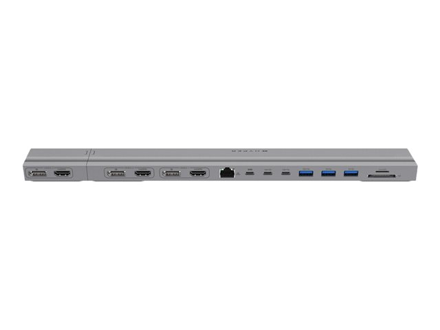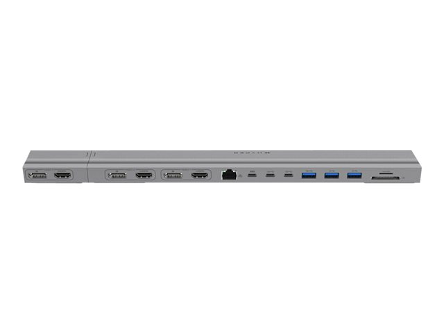 Tuotekuvaus HyperDrive - telakointiasema - USB-C x 2 - 3 x HDMI, 3 x DP - 1GbE Tuotteen tyyppi Telakointiasema Telakkaliitäntä USB-C x 2 Videoliitännät 3 x HDMI, 3 x DP Ulkomitat (PxSxK) 34.95 cm x 5.2 cm x 1.65 cm Paino 300 g Väri Hopea Verkkoyhteydet Gigabit Ethernet Valmistajan takuu 2 vuoden takuu -