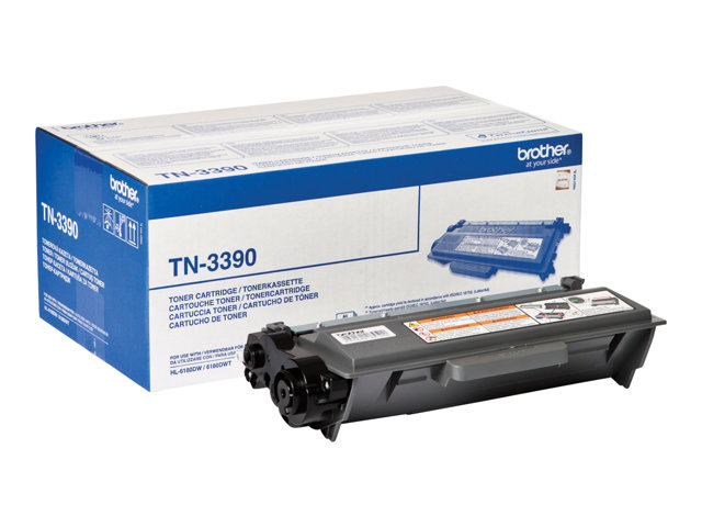Tuotekuvaus Brother TN3390 - 2 pakettia - musta - alkuperäinen - väriainekasetti Tuotteen tyyppi Väriainekasetti Tulostusteknologia Laser Tulostusväri Musta Tuotto Jopa 12 000 sivua ISO/IEC 19752 Sisältyvä määrä 2 pakettia Yhteensopivuus: Brother DCP-8250DN, HL-6180DW, HL-6180DWT, MFC-8950DW, MFC-8950DWT -