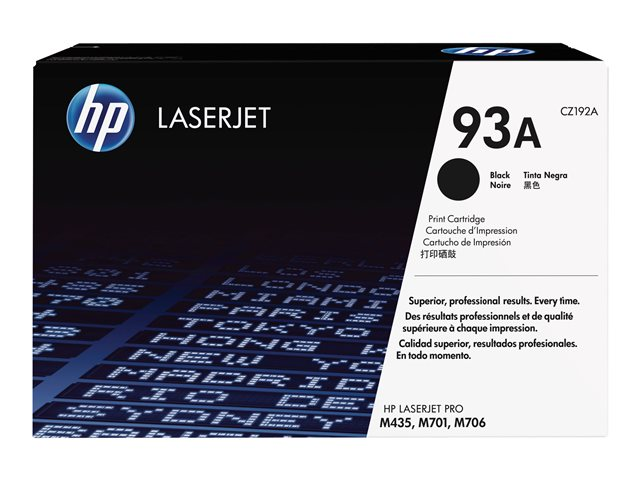 Tuotekuvaus HP 93A - musta - alkuperäinen - LaserJet - väriainekasetti (CZ192A) Tuotteen tyyppi Väriainekasetti Tulostusteknologia Laser HP alibrändi LaserJet Tulostusväri Musta Tuotto Jopa 12 000 sivua ISO/IEC 19752 Yhteensopivuus: LaserJet Pro M706n, MFP M435nw -