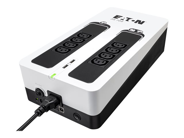 Tuotekuvaus Eaton 3S 700 - UPS - 420 watti(a) - 700 VA Laitteen tyyppi UPS - ulkoinen Paino 4 kg Syöttöjohdotus 1-vaiheinen Tulojännite Vaihtovirta 220-240 V Lähtöjännite Vaihtovirta 220/230/240 V Virtakapasiteetti 420 watti(a) / 700 VA Tuloliittimet 1 x IEC 60320 C14 -virtaliitin Lähtöliittimet 4 x power IEC 60320 C13 (yliaalto)