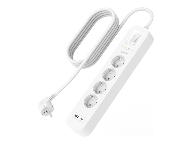 Tuotekuvaus Belkin Connect - ylijännitesuoja - USB-C- ja USB-A-porteilla Laitteen tyyppi Ylijännitesuoja - ulkoinen Johdon pituus 2 m Lähtöliittimet 4 x teho (yliaalto)